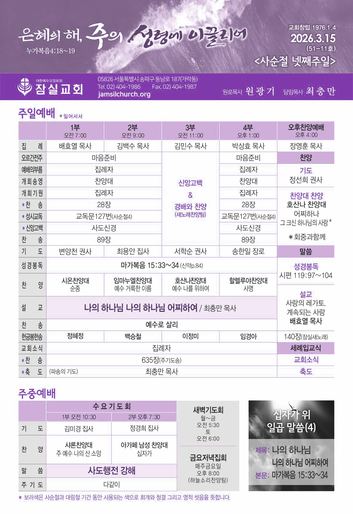 예배시간 안내